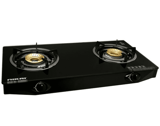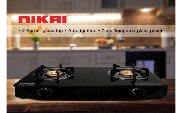 موقد طاولة غاز من نيكاي بشعلتين من الزجاج المقسى مزود بعناصر حماية كاملة