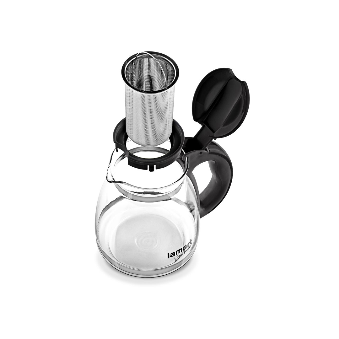 تحتوي الغلاية على مصفاة من الفولاذ المقاوم للصدأ للشاي السائب أو قطع الفاكهة أو أعشاب الشاي