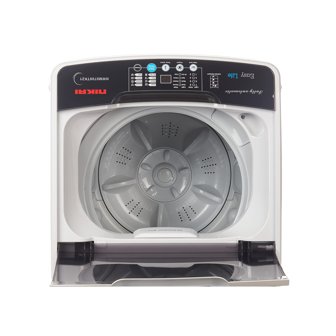 غسالة أوتوماتيكية بتحميل علوي من نيكاي، تصميم بسيط بفتحة تحميل علوية بمحرك قوي وسعة كبيرة، مما سيجعل مهمة الغسيل سهلة. تدفق المياه مع دوران الأسطوانة الفعال مأخوذ في عين الاعتبار لعملية الغسيل الشاملة حيث تحتوي على أزرار منظمة بشكل بديهي لسهولة التشغيل وانتهاء عملية الغسيل بدون تشابك الملابس مما يجعل العملية أقل فوضوية. توفر عناية لطيفة للأقمشة دون المساومة على مستوى الأداء